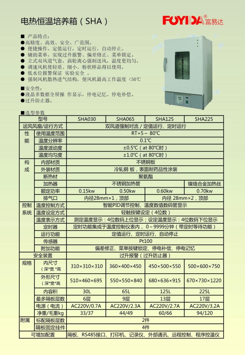 > 富易達 SHA系列 電熱恒溫培養(yǎng)箱